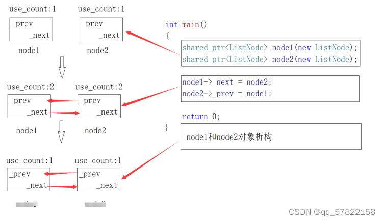 - // 原理就是,node1->_next = node2;和node2->_prev = node1;时weak_ptr的_next和_prev不会增加