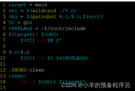 👉 "-" 此条命令出错,make也会继续执行后续的命令。如:“-rm main.o”