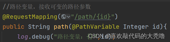 路径某个部分可以动态变化,可以看作变量。HTTP协议,规定请求的数据只能是在queryString或者body中,这里没有遵循该规则,将数据存放在url中。(方法参数上使用@PathVariable注解)