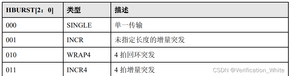 传送数据大小由 HSIZE[2:0] 信号控制,表示每次传送的字节数目