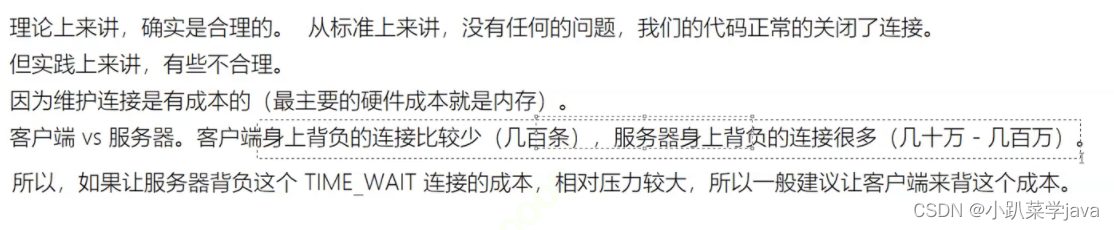 所以在网络设计时,不建议服务器主动关闭连接。(特殊情况下,服务器也会主动关闭)