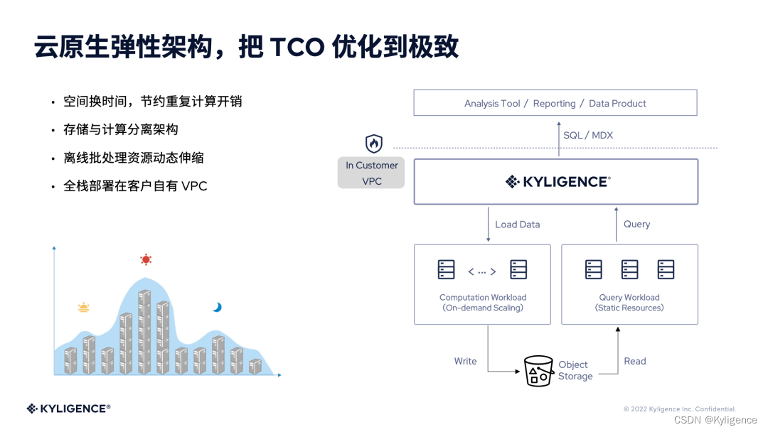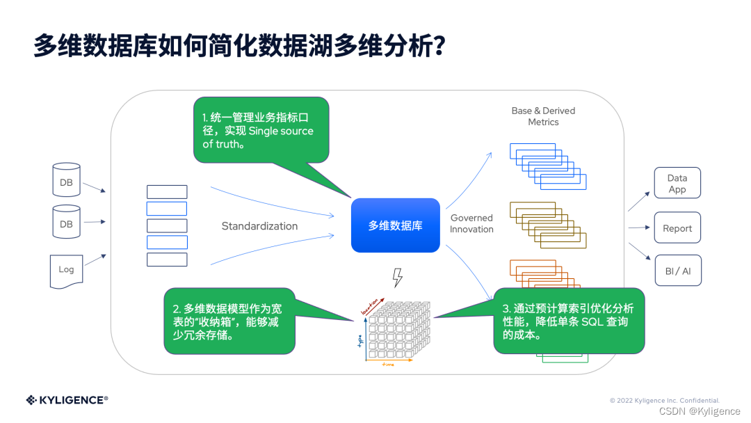 因为多维数据模型的存在,每个模型内部会统一存储所有数据的指标,统一数据指标口径的管理,自动化和简化数据开发的过程。同时,Kyligence 的 OLAP 引擎可以针对大数据量进行优化,企业能以更低的 TCO 来支撑更大的数据量。