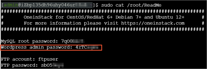 - 获取服务器中预置的WordPress登录信息。