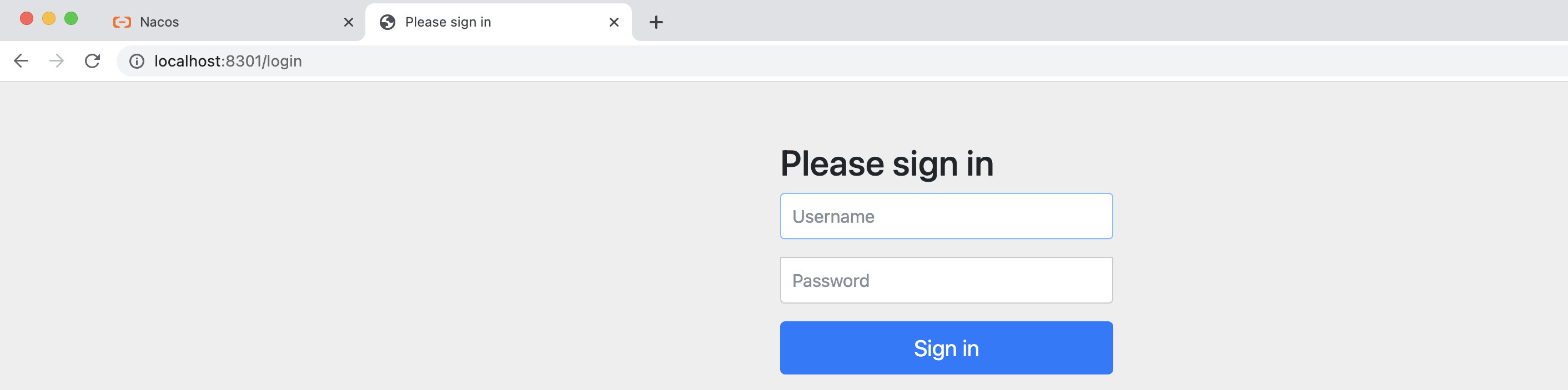 可以看到,访问失败,直接把我们给重定向到登陆页面了,也就是说必须登陆之后才能访问,同样的方式去访问其他服务,也是一样的效果。
