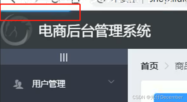 我们要实现的效果就是,当我们点击每一个菜单,加载相应的页面时,在页面顶部中间会有一个加载的蓝色条条,随着页面的加载向右侧移动:
