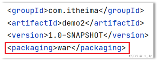 2、pom.xml中添加打包方式为war