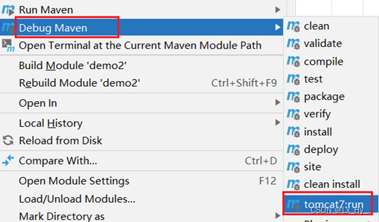 如果需要断点调试,选择 Debug Maven