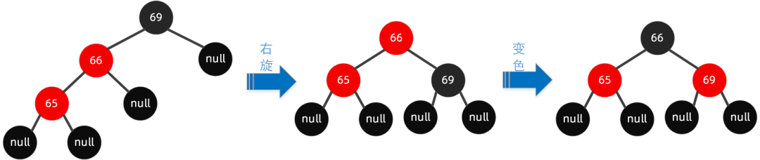 规则如下:以祖父节点【右旋】,搭配【变色】。
