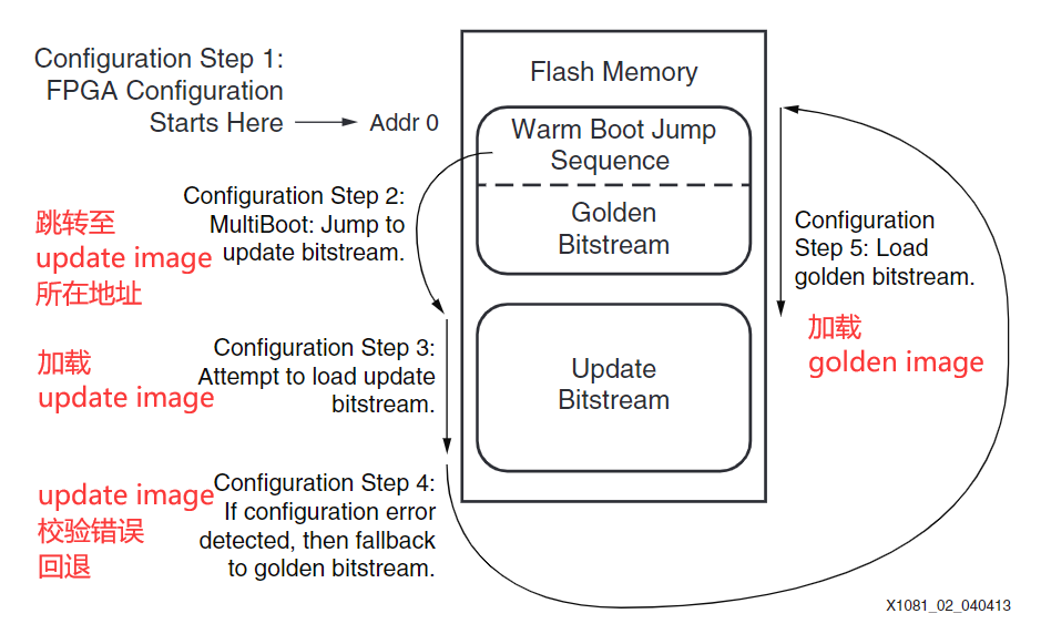如下图所示,FPGA工作时,可以通过QSPI时序擦写update image。