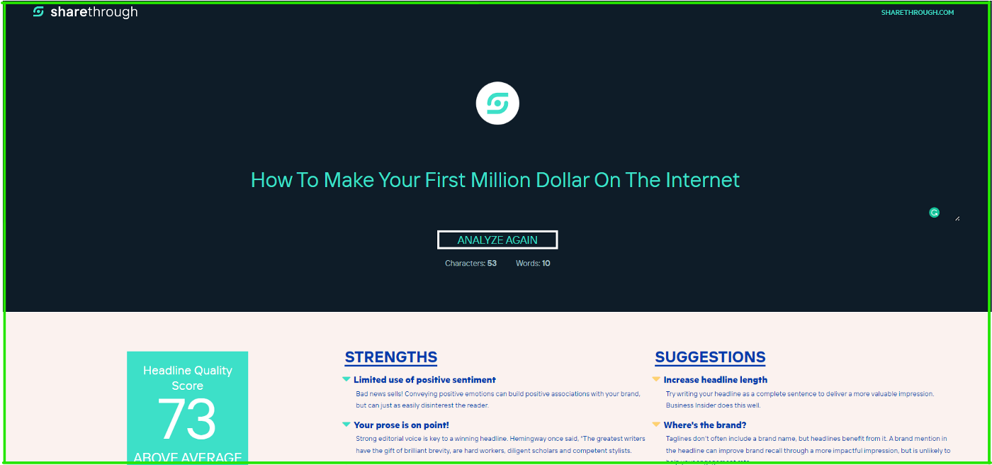 It’s a great tool for making your headline better. Although I’m not dependent solely on such tools, but in some way, they help me a lot.
