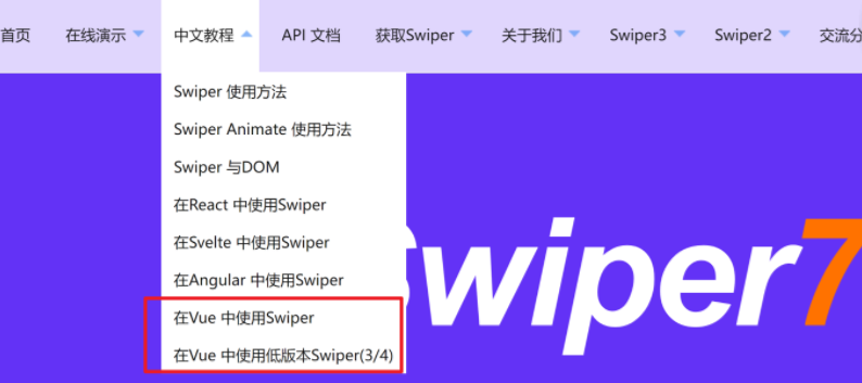 Vue3 和 Vue2 使用的 swiper 版本不同, 需要区别安装