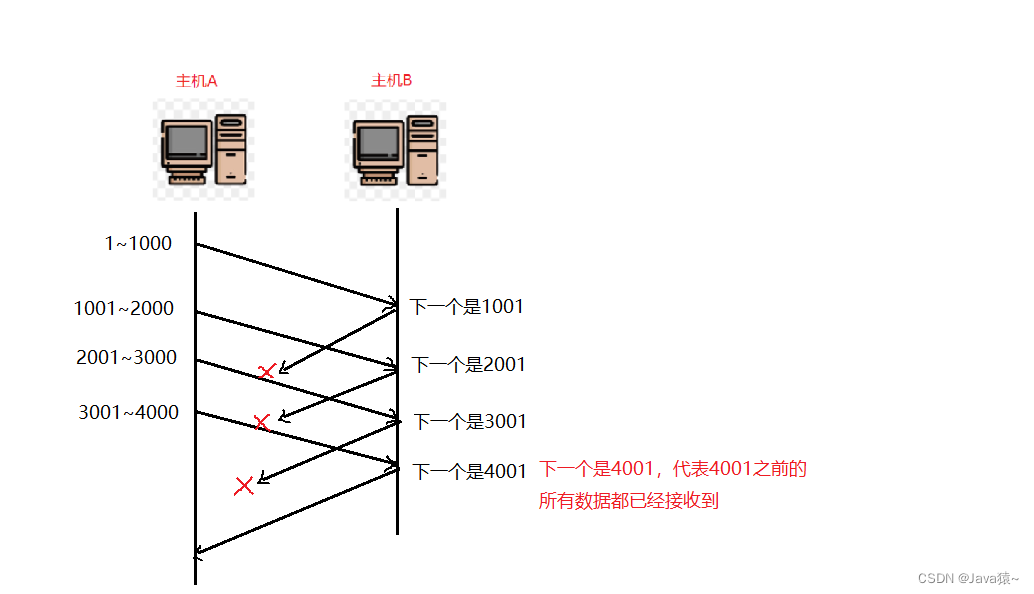 - 如果发送端主机连续三次收到相同的ACK如1001应答,那发送端主机就会重新发送1001~2000数据