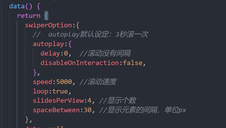 给轮播图添加配置项,配置项写在data里,用:options:””绑定到swiper上