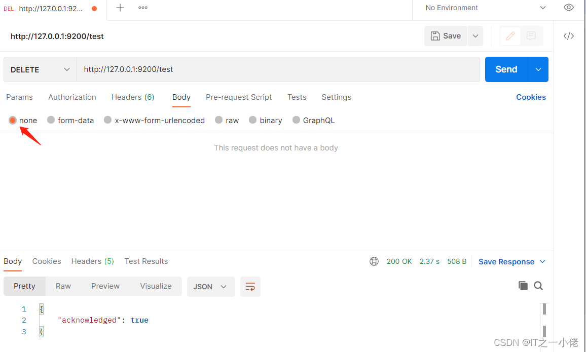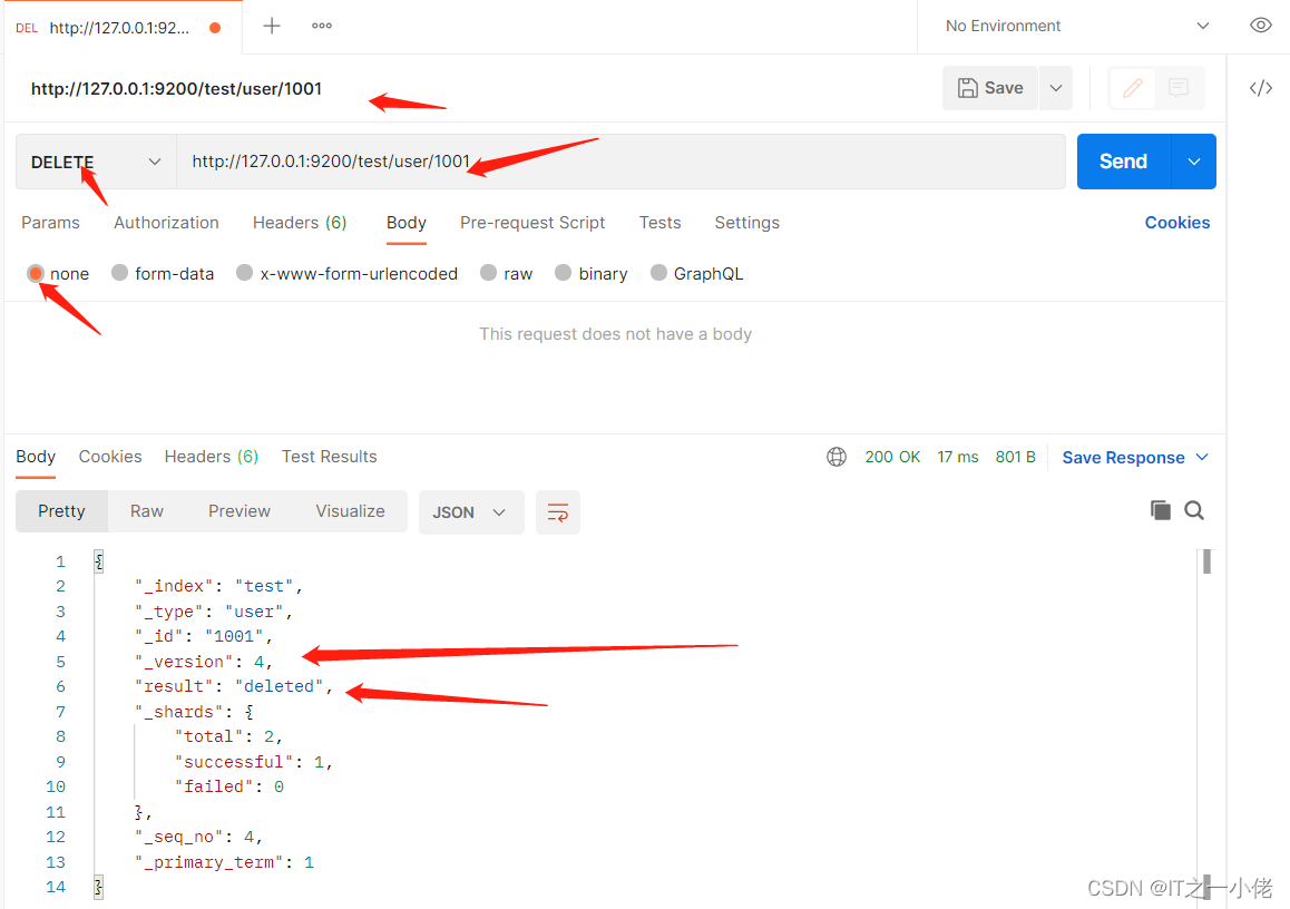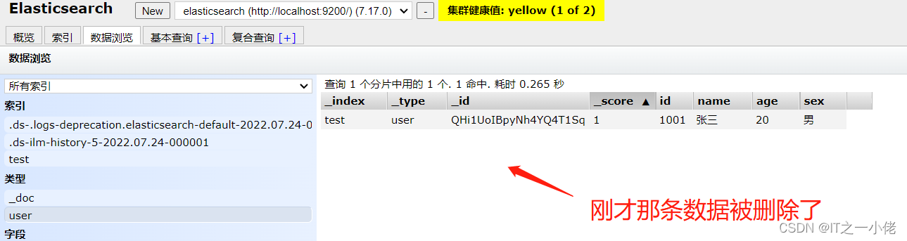在Elasticsearch中,删除文档数据,只需要发起DELETE请求即可。