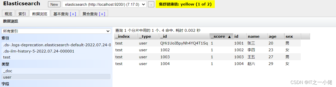 在Lucene中,创建索引是需要定义字段名称以及字段的类型的,在Elasticsearch中提供了非结构化的索引,就是不需要创建索引结构,即可写入数据到索引中,实际上在Elasticsearch底层会进行结构化操作,此操作对用户是透明的。