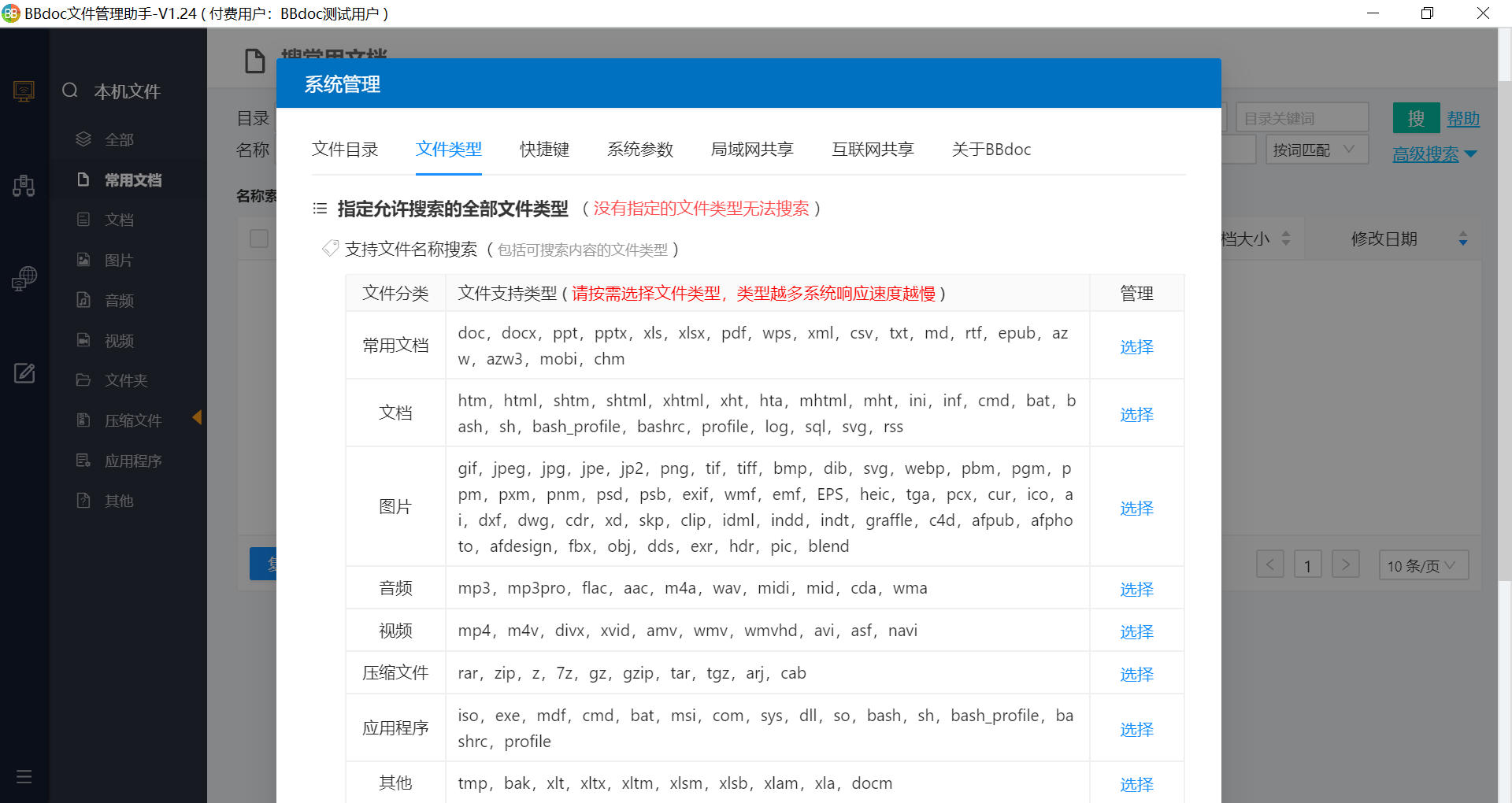 google桌面 BBdoc文件管理助手 不支持。 支持搜索文件目录、文件类型选择,支持多选。