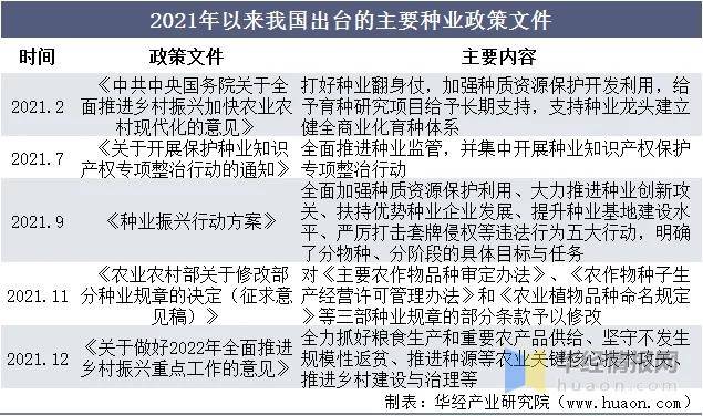 2021年以来,我国密集出台相关政策文件,加大对种业的支持与保护力度,为后续种业工作的顺利开展提供了坚实的保障。2022年国家出台的中央一号文件,提出要保障粮食供给,守住耕地红线,大力推进种源等农业关键核心技术攻关。在政策支持下,我国种业市场环境或进一步优化,我国水稻市场竞争格局有望稳中向好。