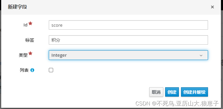 点击【添加字段】为当前对象添加字段,设置字段类型及描述