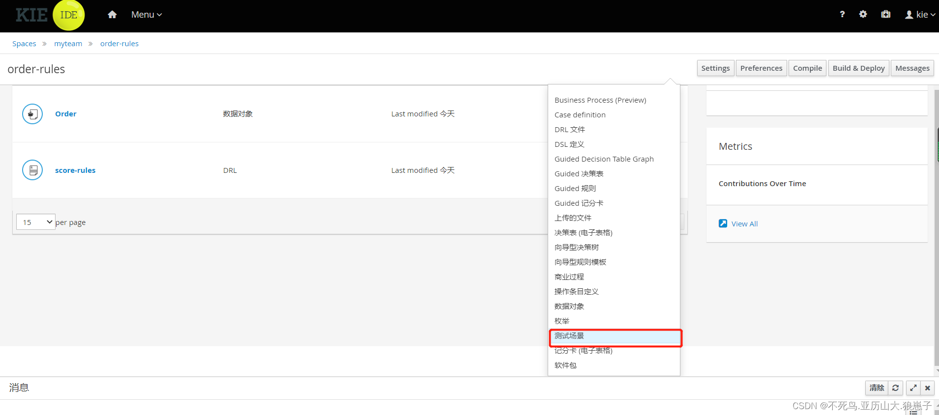 对象定义完成后,我们来创建⼀个简单规则,同样创建 Asset,选择【DRL⽂件】