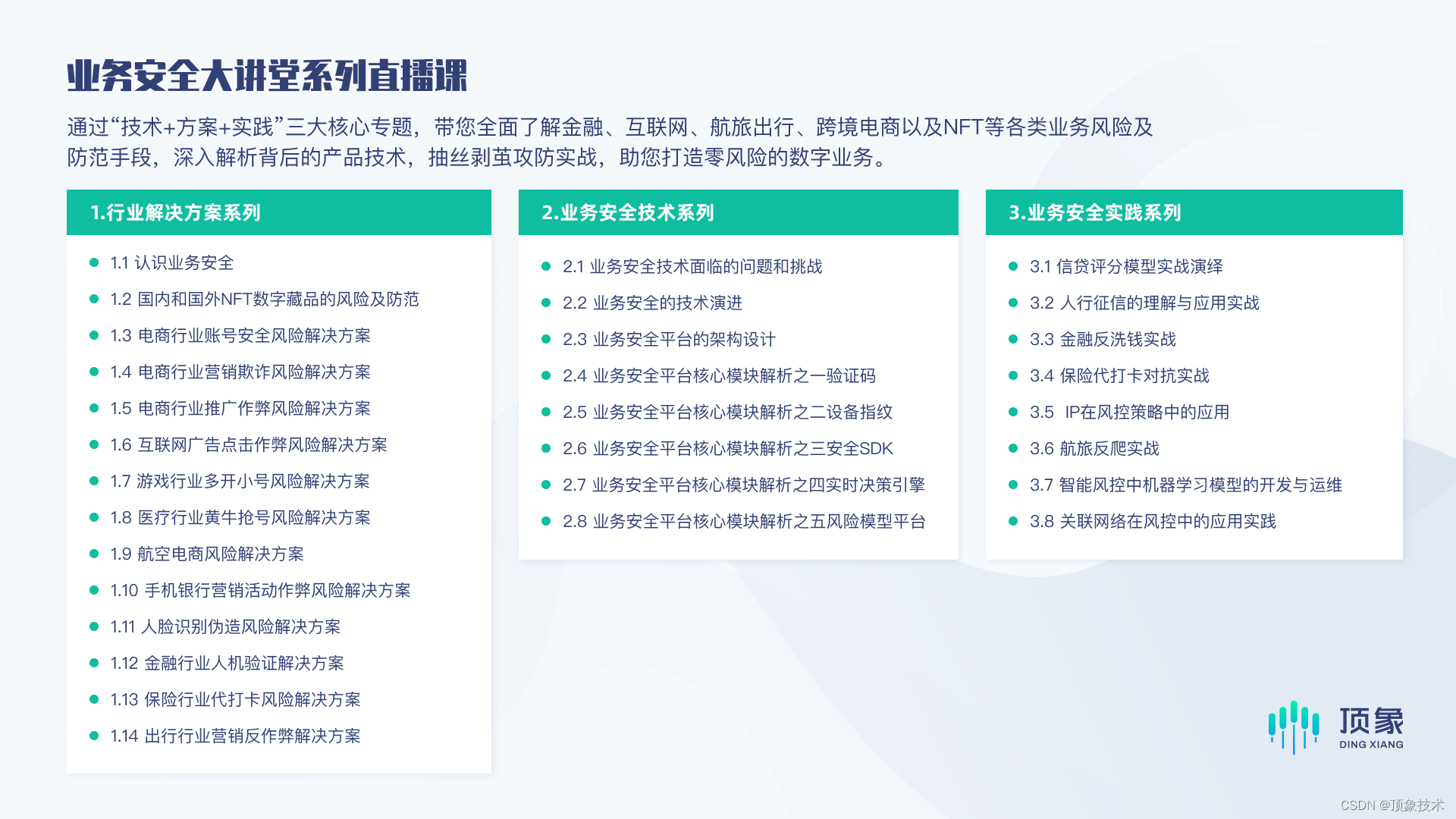 再次给大家介绍下顶象《业务安全大讲堂》系列直播课。