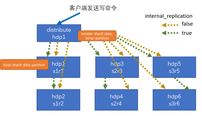 Distributed 表引擎本身不存储数据,有点类似于 MyCat 之于 MySql,成为一种中间件, 通过分布式逻辑表来写入、分发、路由来操作多台节点不同分片的分布式数据
