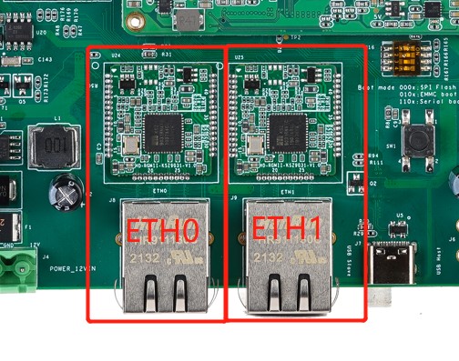 HDG2L-IoT开发板标配两个以太网口,分布如图19所示。