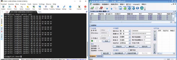 运行CANTest程序可以通过CAN口收发数据。该程序在运行时,需要提供一个命令行参数,即需要打开的CAN口名,这个CAN名参数可以为“can1”、“can2”。例如需要通过CAN2口进行数据收发,在命令行下执行如下命令: