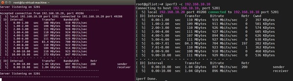 网口采用iperf工具进行测试,client端显示发送速率,server端显示接收速率。