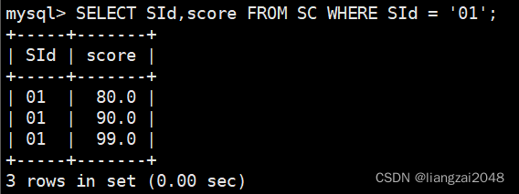 2、然后将Student表t1与SC表t2进行关联,以SId、Sname进行分组,用表t3筛选出选修了全部课程的学生信息