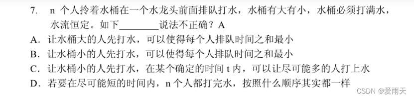10.对于货箱装船问题,根据贪心策略,首先选择( A )的货箱,然后选 ()的货箱,如此下去直到所有货箱均装上船或船上不能再容纳其他任何一个货箱