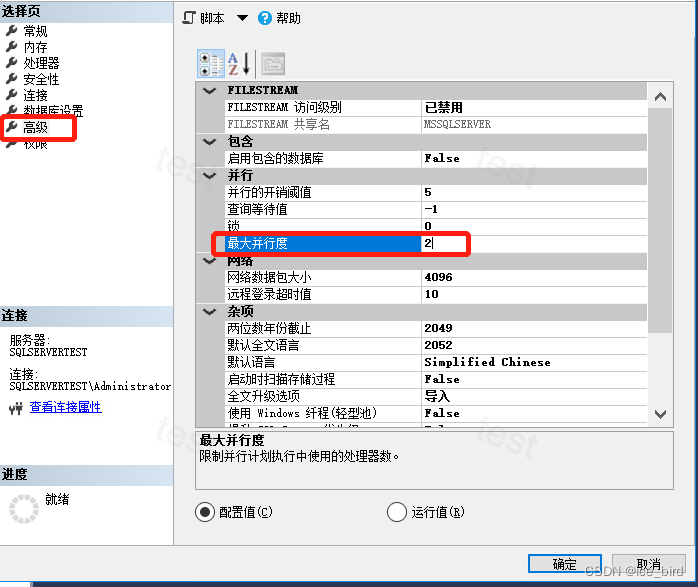 官方参考链接:配置 max degree of parallelism 服务器配置选项 - SQL Server | Microsoft Docs