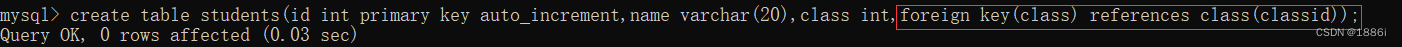 语法:create table 表名(foreign key(当前表的列) references 另一个表(另一个表里的列));