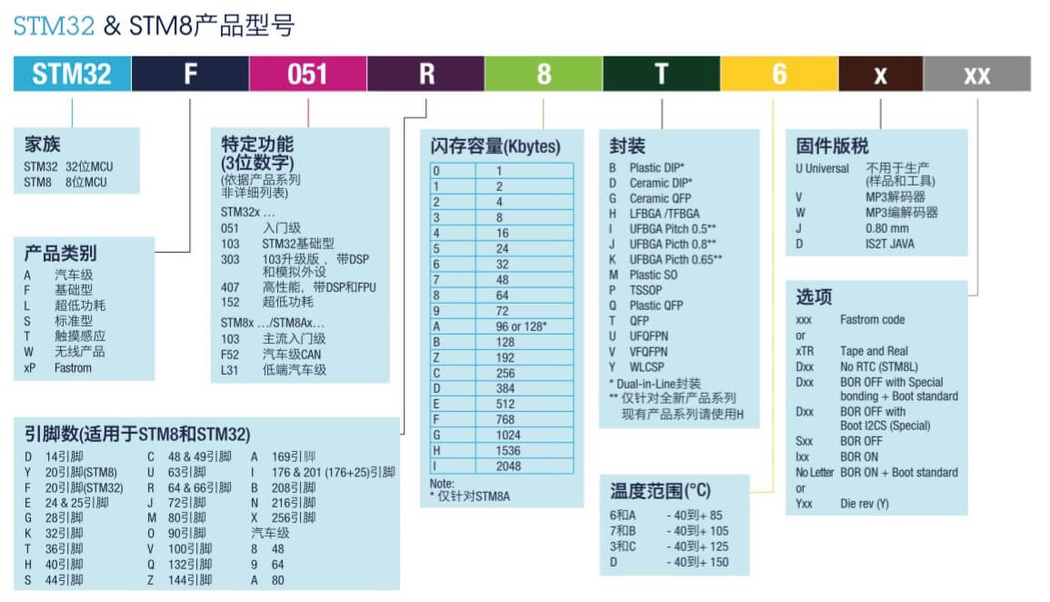 STM32致力于ARM® Cortex® 内核单片机和微处理器和微处理器市场和技术方面,目前提供18大产品线 (F0, G0, F1, F2, F3, G4, F4, F7, H7, MP1, L0, L1,L4, L4+,L5,U5,WB,WL),超过1000个型号。