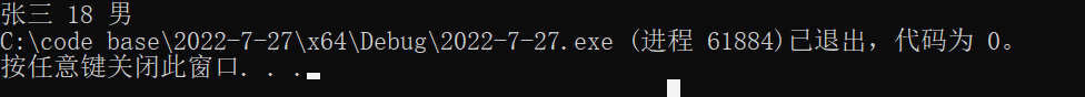 #include struct Person { char name[10]; int age; char sex[4]; }; int main() { FILE* pf = fopen("test.txt", "w"); if (pf == NULL) { perror("fopen:"); return 1; } struct Person p = { "张三",18, "男" }; fprintf(pf, "%s %d %s", p.name, p.age, p.sex); return 0; }