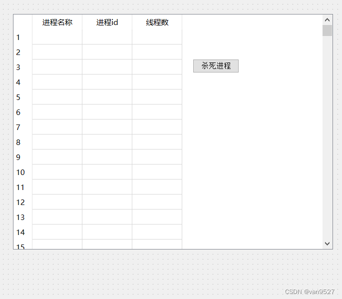是一个TableWidget表格 包含了进程名称 进程id 线程数这几个数据