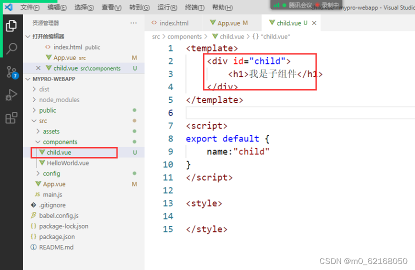Vue脚手架中的子组件创建