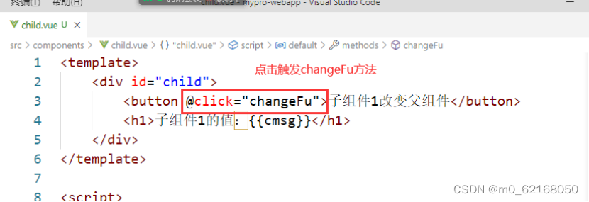 在子组件点击触发changeFu方法