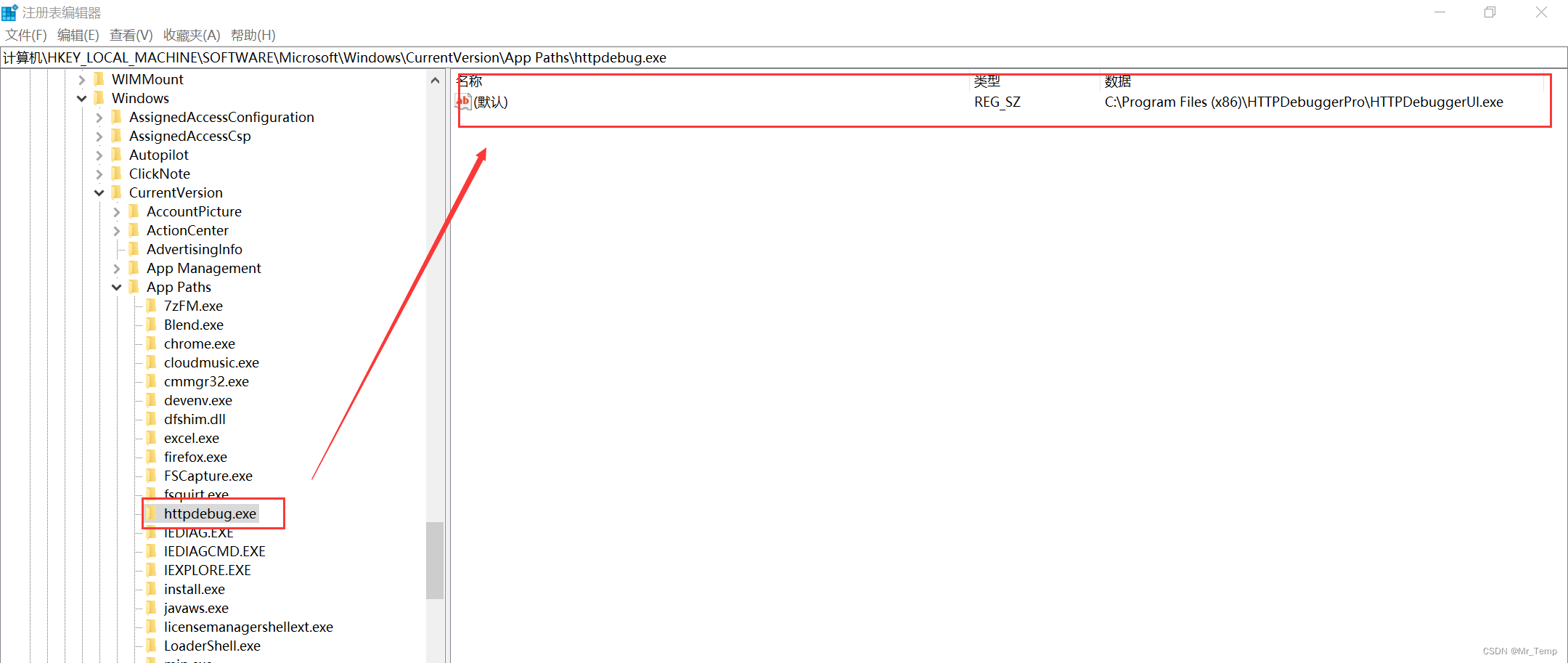 例如:需要调用“HTTP Debugger Pro”这个工具,此时,我们可以在上述注册表路径下,添加一个项,进行对应的配置,我们在命令行中就能直接调用并呼出对应的程序。