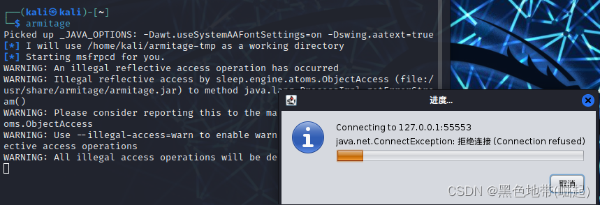 Metasploit默认使用PostgreSQL存储渗透测试所需的数据表,所以在启动Armitage之前需要首先启动 PostgreSQL服务和Metasploit服务