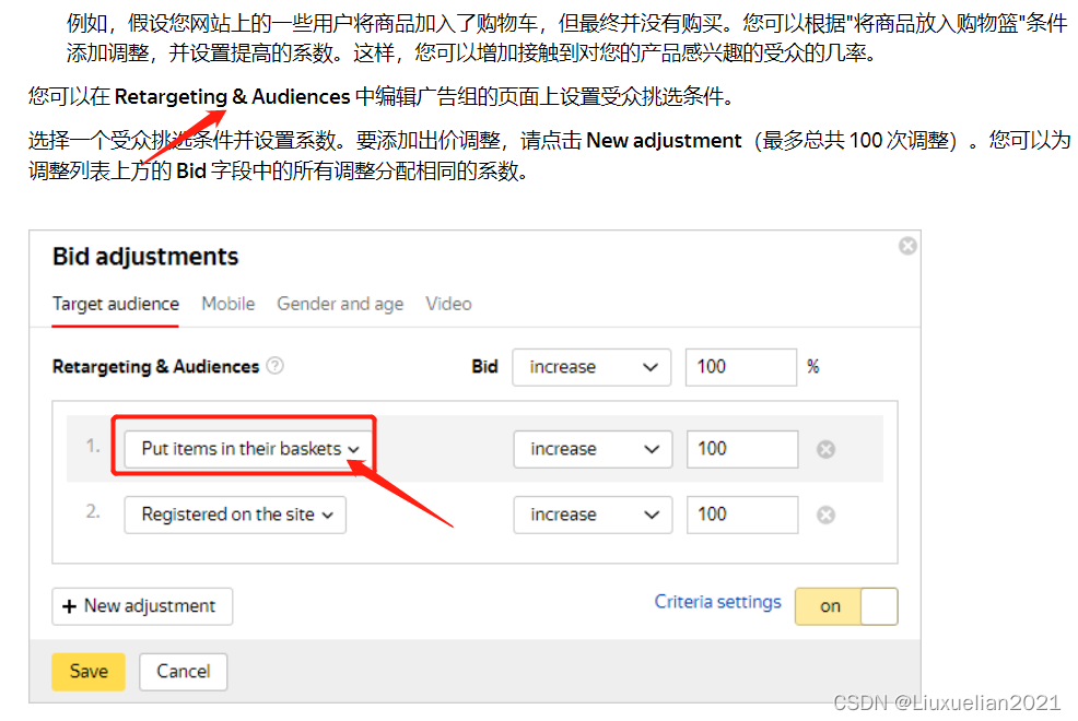 例:之前将网站商品添加购物车但未进行支付(潜在高意向客户,提高广告出价,把客户牢牢抓住)