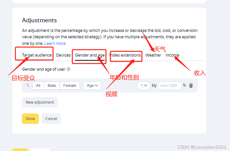 1、目标受众 2、设备 3、年龄和性别 4、补充视频广告 5、天气 6、收入