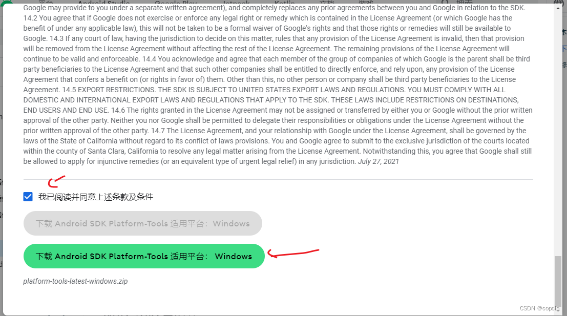 下滑到最底部,勾选我已阅读并同意上述条款及条件,然后点击绿按键下载;