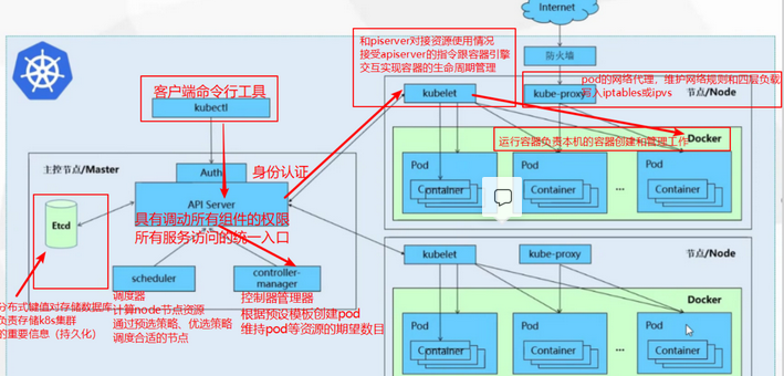 | Kube-proxy | 在node节点上实现pod的网络代理,维护网络规则和四层负载均衡规则,负责写入规则到iptables或ipvs实现服务映射访问 |