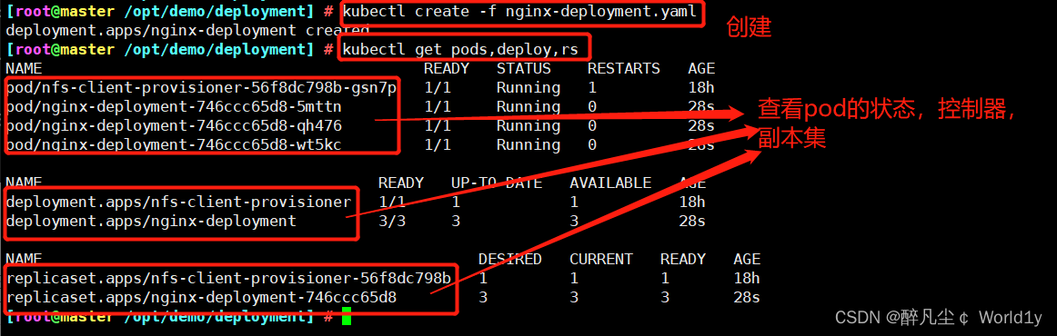 - [root@master ~]# kubectl create -f pc-replicaset.yaml