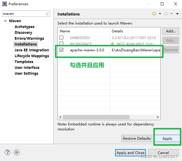 4.1 在eclipse中集成maven:Installations 和 User Settings