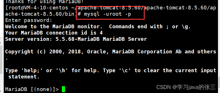 mysql -uroot -p
