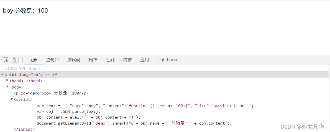 - document.getElementById("demo").innerHTML = obj.name + " 分数是:" + obj.content();