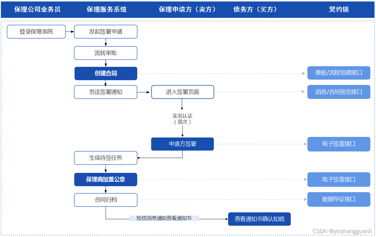 通过集成应用,契约锁电子签章可以为保理业务平台提供“保理业务申请通知书模板、身份认证以及电子签章服务”。