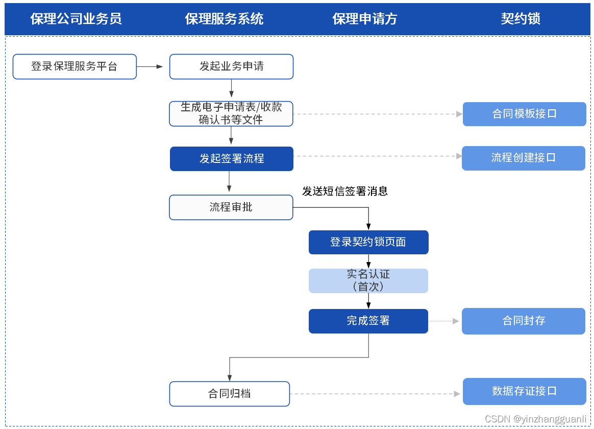 契约锁帮助集成保理服务系统,保理公司无需改变原有办公习惯,打开业务系统通过流程即可调用契约锁电子签章、在线发起保理合同签约流程。申请方及担保方查收短信签署消息,登录契约锁页面完成身份认证和签约,合同文件自动回传业务系统归档。