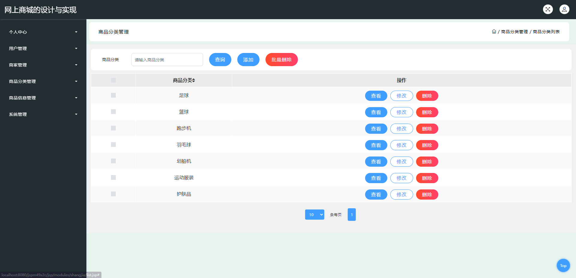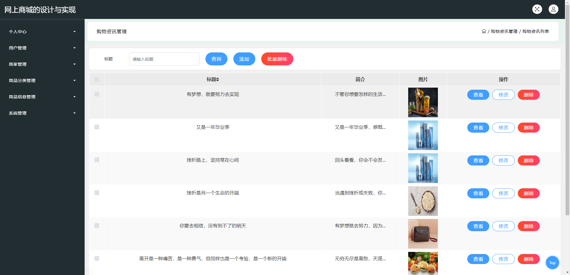商家:个人中心,商品信息管理,订单管理等